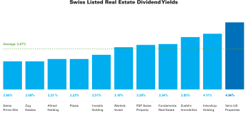 According to Q1 2023 listed equities research from leading Swiss investment bank UBS, the average dividend yield for 2022 for the top eleven Swiss listed real estate stocks was 3.07%.